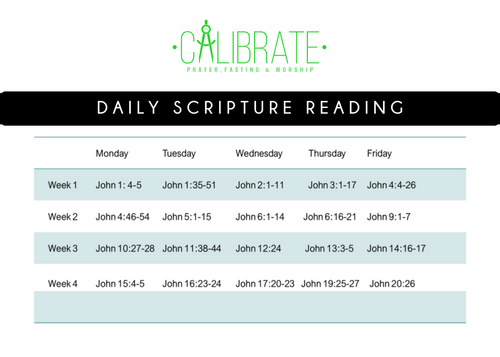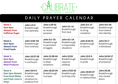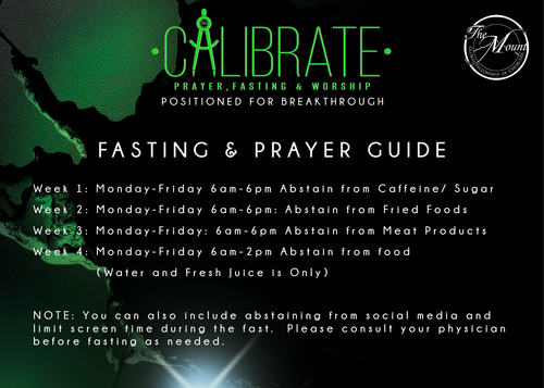 TMGFOC, we are stepping into 20 days of intentional fasting and prayer! Calibrate means to adjust something so that it aligns with its intended purpose. Over these 20 days we’re will fasting, praying, and reading through the Gospel of John, watching Jesus' break through barriers and situations that seem impossible. We are positioning ourselves for breakthrough! This is the Year of Breakthrough, and it starts with Alignment!