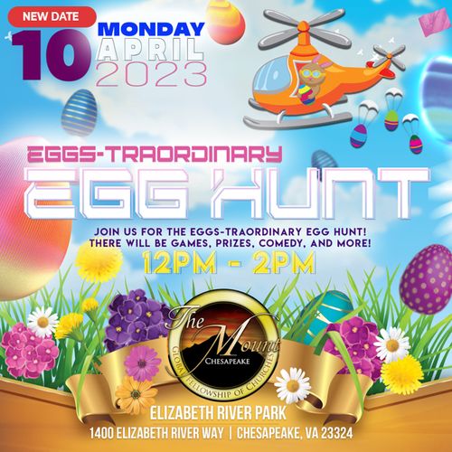 The EGGS-TRAORDINARY EGG HUNT has been rescheduled due to rain. Join us.... MONDAY, APRIL 10, 2023 | 12-2PM Elizabeth River Park Chesapeake, VA